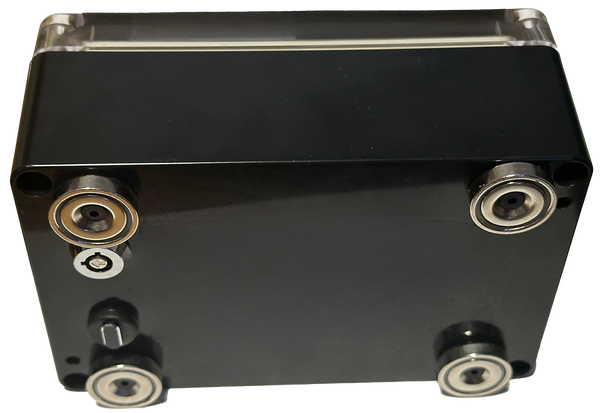 Fördelen med designen är att lådan är helt vattentät och kan därmed användas i alla väder. Den har även starka magneter på baksidan som gör att den lätt kan fästas på metallytor.