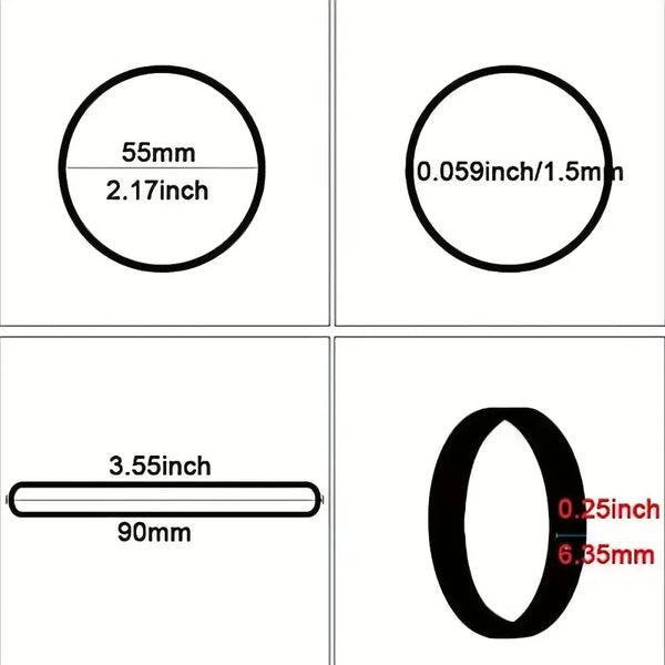 Dessa gummiband är 6,35mm breda och 180mm i omkrets.